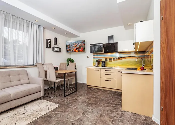 Apartament Ku Słońcu - Hel położony jest 600 metrów od plaży miejskiej. Obiekt oferuje bezpłatne Wi-Fi oraz widoki na miasto. Apartamenty charakteryzują się nowoczesnym wystrojem oraz w pełni wyposażonymi kuchniami. W okolicy znajdują się różne atrakcje, a sam apartament znajduje się przy głównych trasach komunikacyjnych. Obiekt jest idealny dla par oraz rodzin.